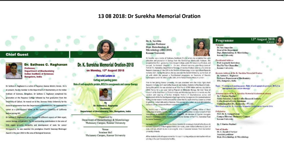 Dr K Surekha Memorial Oration Dr Satees C Raghavan Professor IISC